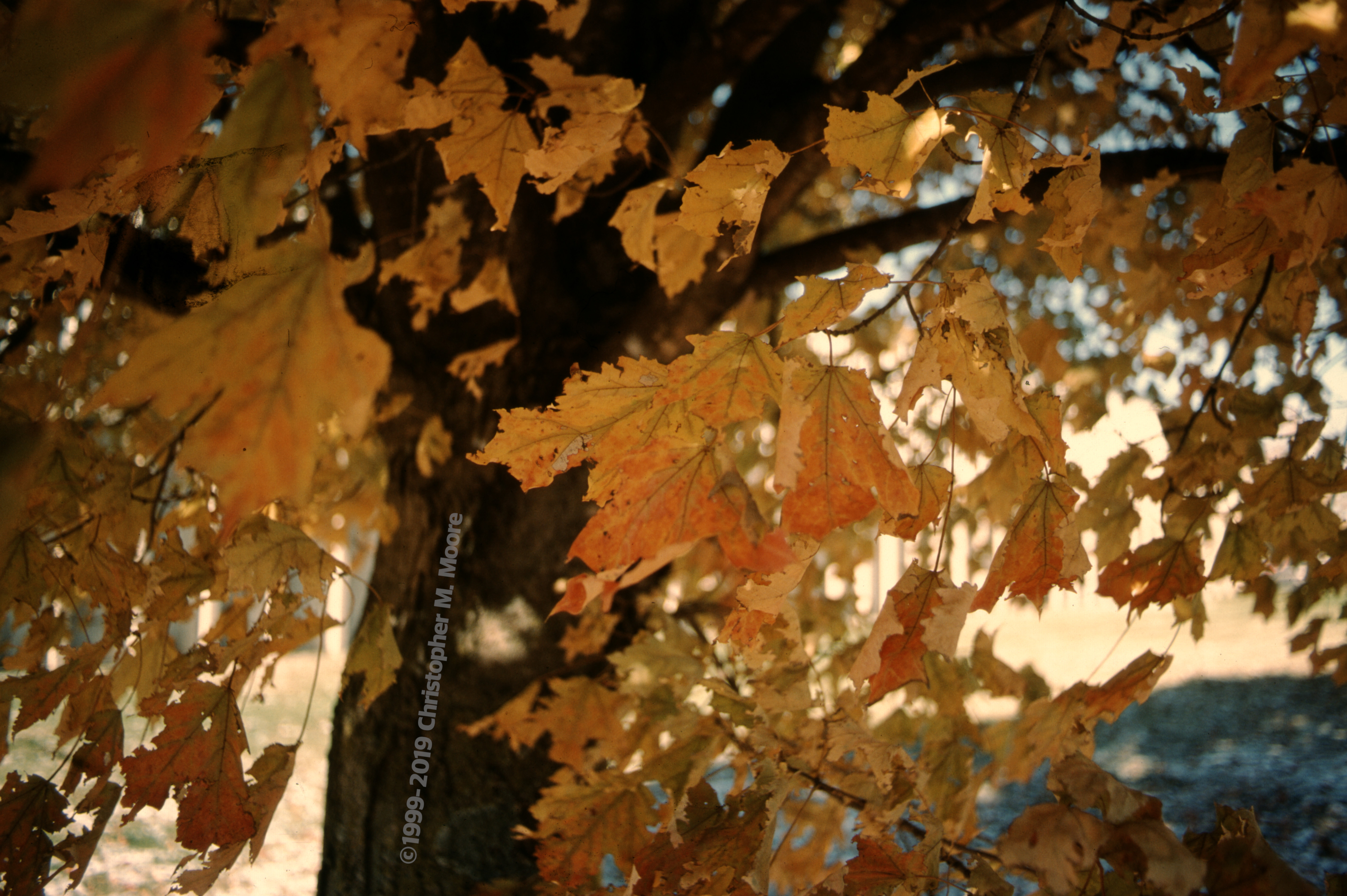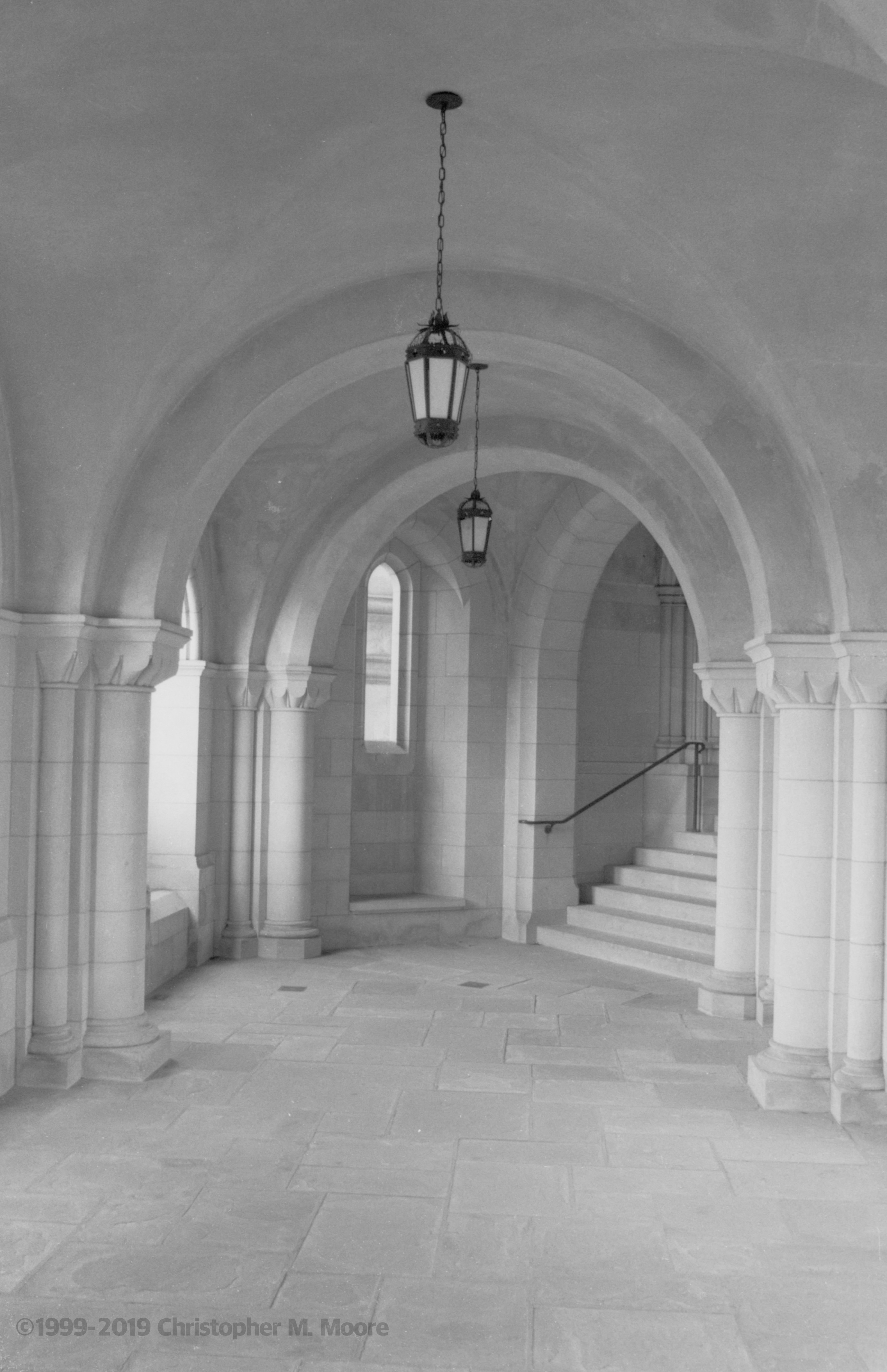 I scanned one b/w shot of the outer hallway of the National Cathedral on Ilford Delta 400 film (TMax chemistry) done long ago on the Canon Rebel 2000. I also scanned one color shot of a tree in fall, which I have posted on this site before for comparison.