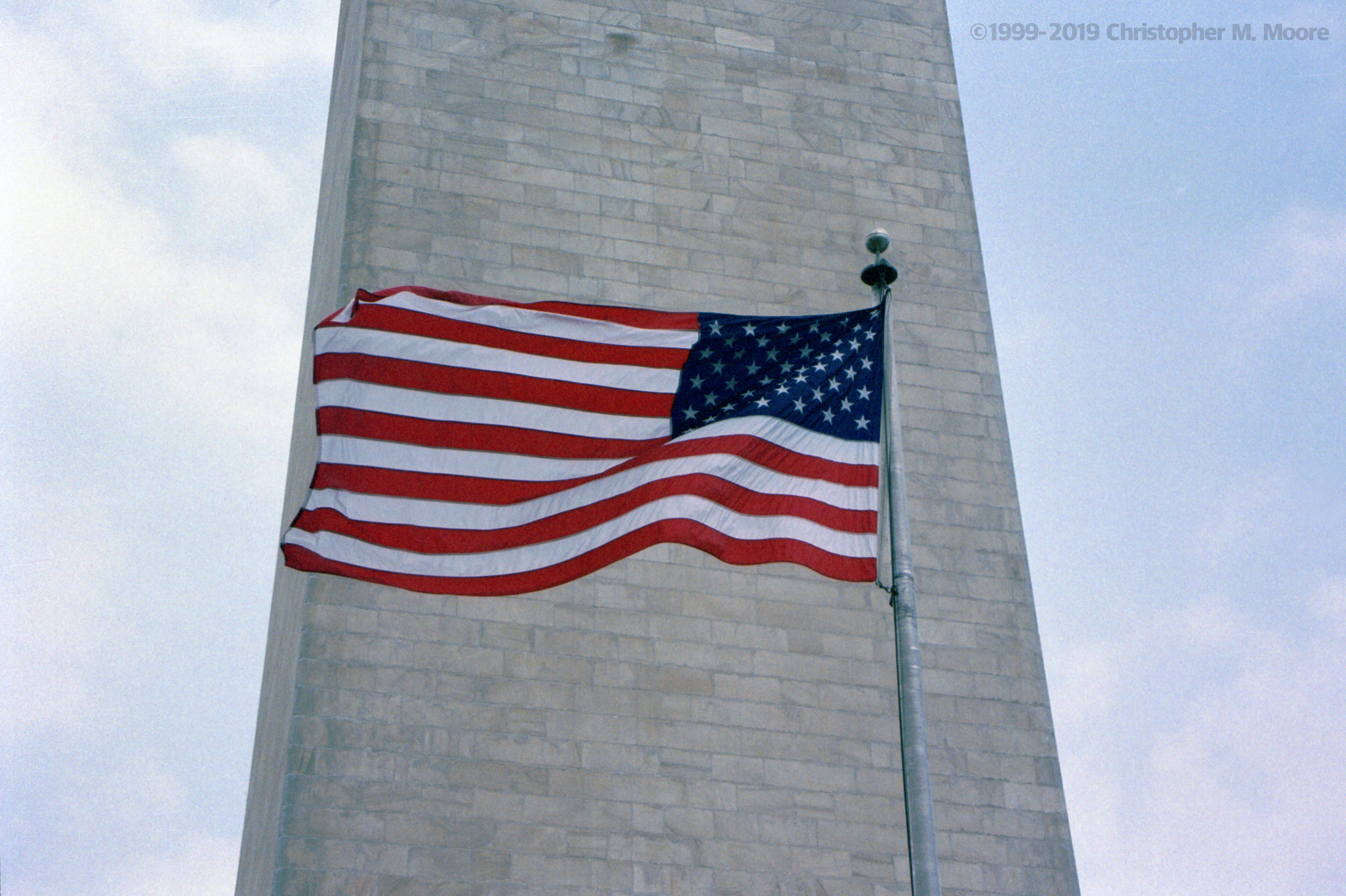 Appropriate for President’s Day, a windy day in the early 2000’s zooming in on a flag in front of the Washington Monument. Shoot photos, not each other!