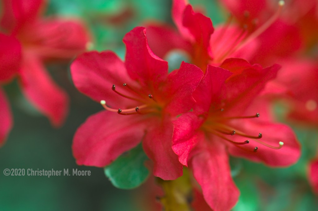 My wife’s first reaction to this picture was “honey, our azalea is PINK.” That would be correct. I pulled the raw file up on the computer and I hated it. I couldn’t assault anybody’s eye with it. It looked flat, it had no dimension, no depth, no character. I adjusted the chroma settings and got this bright red color and all of a sudden I felt great about it. I take advice from Bob Ross and play with color until it makes me happy. In the middle of all this COVID madness shoot photos, not each other.