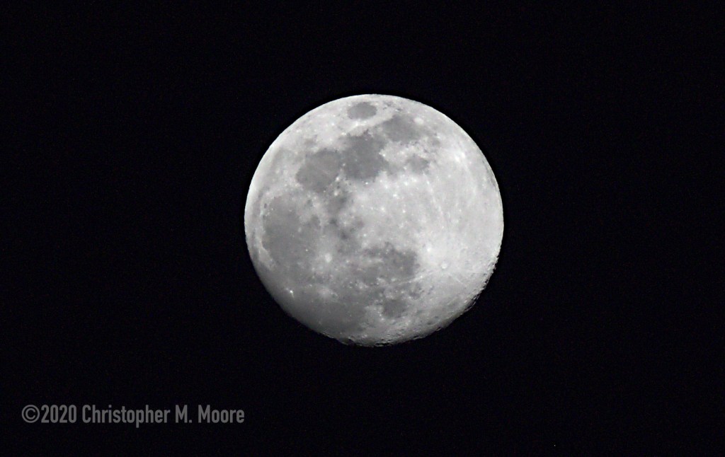 From my back yard I present the largest, brightest, most difficult to expose and nearly impossible to focus object in our night sky, shot with paltry equipment that barely meets the bare minimum requirements to yield anything.