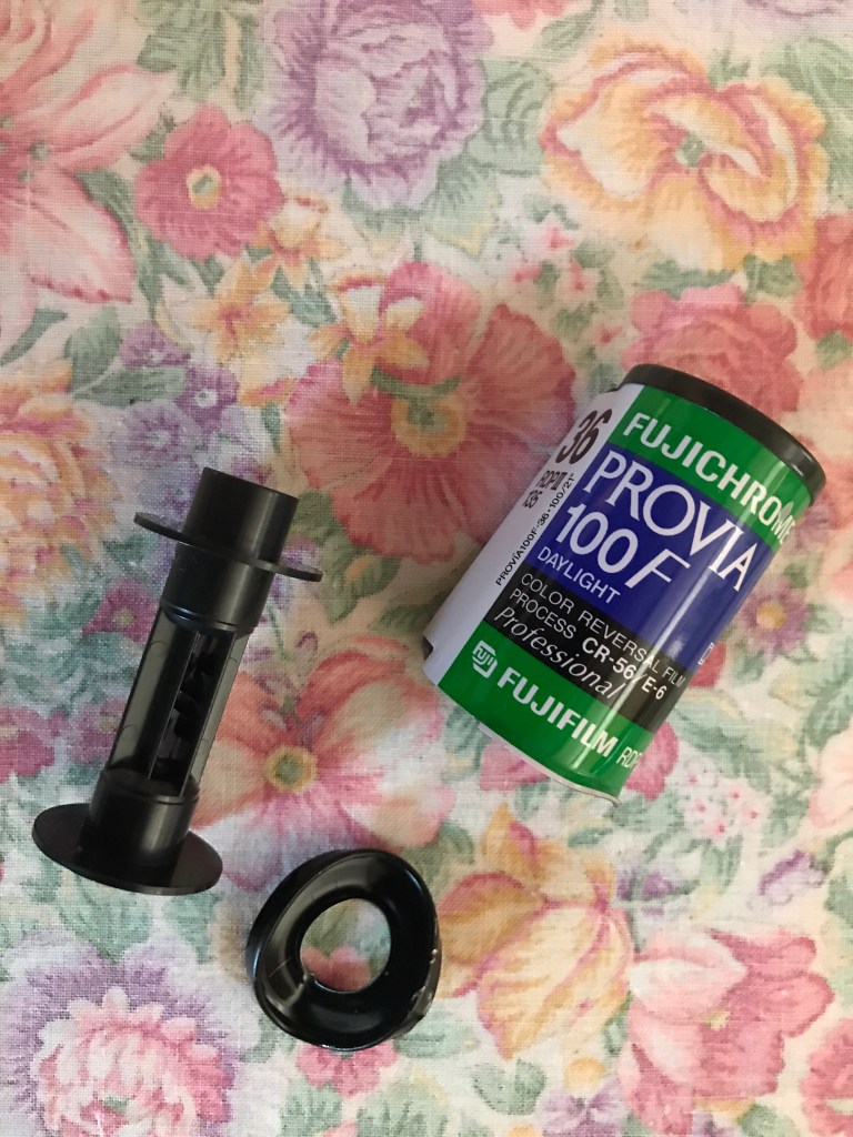 I had one single roll of expired Fuji Provia 100 film remaining. I was curious to see, would this technique actually work? As you see, my technique for getting film out of the cassette is rather savage.