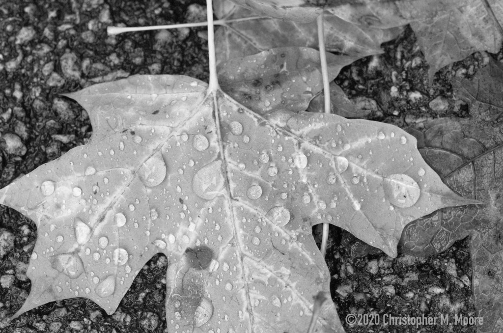 A black and white photo of a fall leaf is rather unusual – with the lack of color, the purpose of photographing leaves is defeated. But, after several days of rain, the leaves were brown and my driveway was black and gray asphalt. To be honest, there’s just not a whole lot of color to squeeze out of this picture. On the first day of meteorological winter (for those in the northern hemisphere), it seems appropriate to leave fall behind with this. Shoot photos, not each other!