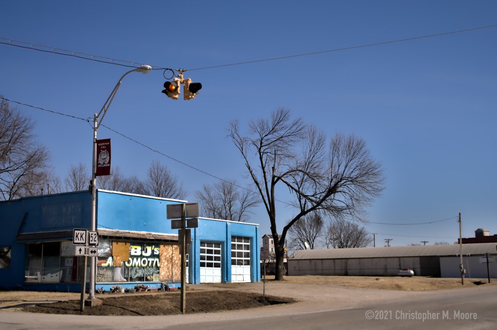 Originally shot 15 years ago (2/26/2006) on a strangely warm winter Sunday morning in the small town of Appleton City, Missouri, USA. The entire town was completely deserted, not a soul for miles. I’ve actually published some of these photos before, but I initially imagined them as artistic black and white shots. I love black and white, but having come out of cataract surgery last year, I have exponentially improved visualizations of color. With that, black and white just doesn’t seem right if it’s not done on true silver black and white film. Reimagining art in color is an extremely rewarding exercise. Shoot photos, not each other!