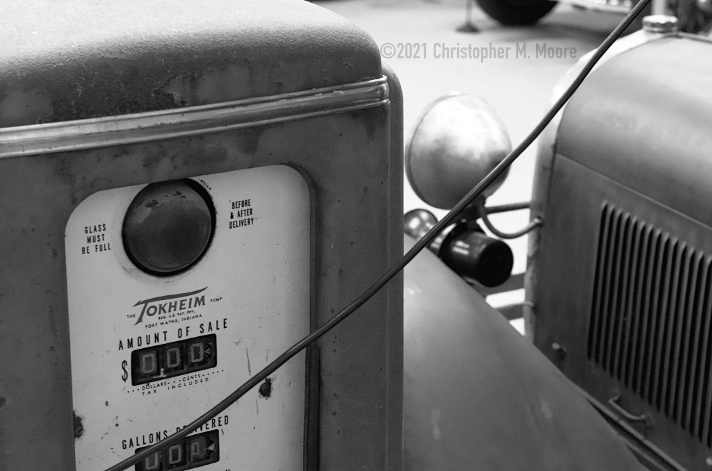 The electric cord in this photo makes the image that much more unusual with a car that’s anything but electric. Shoot photos, not each other!