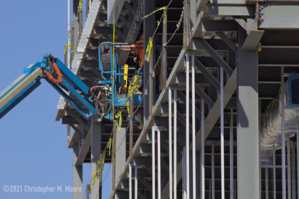 On this neighborhood walk earlier this year, I caught this (now finished) bank under construction. Actually a bank with several other business tenants, it came out quite nice. If that’s not enough, it’s next door to a Starbuck’s too. Shoot photos, not each other!