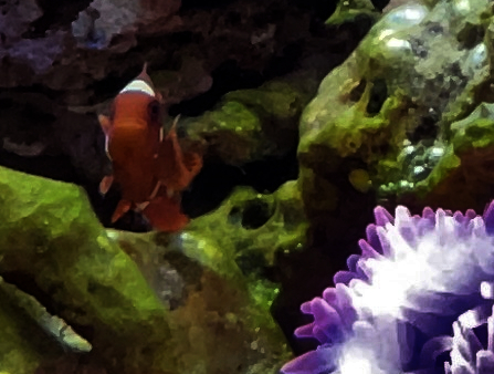 The same fish tank at the same pizza place on the same iPhone 12 where I shot Grumpy Fish – except this time, it’s the clown fish that is disapproving.