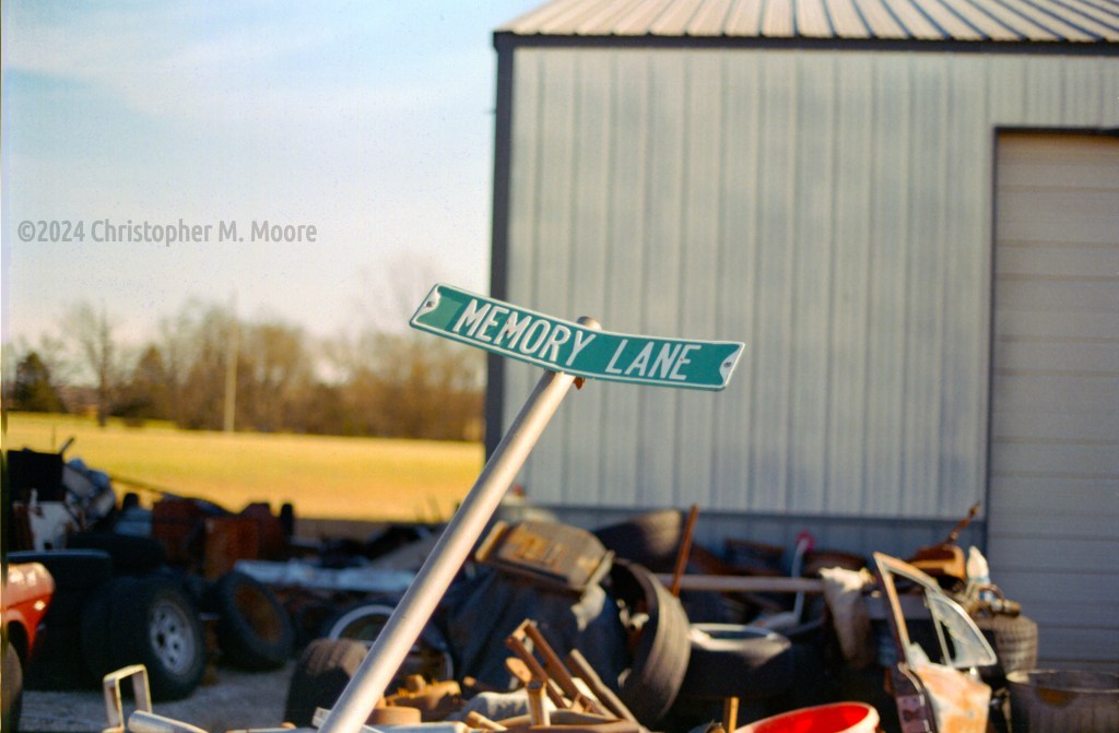 The final shot of this series shot at a car dealer in rural Missouri. Fitting, since this was a twisted up street sign of the dealer’s address on “Memory Lane.”