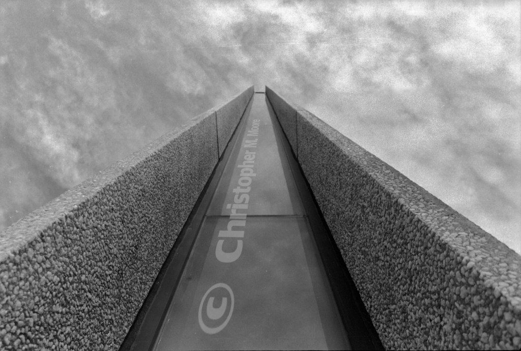 This shot is the front side of the George Mason University Center for the Arts, shot on December 28, 2001. It was a sunny and oddly warm day to be the end of December. As the last final exam of my last semester in this institution had been completed only about 3 weeks prior, I wanted to take pictures of various spots as they were at this time, and I wanted odd angles of things. I was a much younger man then. I wasn’t exactly sure where I was going. But, I knew I was going somewhere. Shoot photos, not each other!