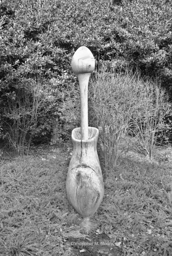 When you peruse the parts of college campuses where art students display their stuff, you find some strange things. I will be honest with you – I have no idea what this wooden sculpture, shot on the campus of George Mason University in the late 1990’s is. A flower? A mushroom? A nuclear mushroom cloud? A certain part of the human anatomy that is highly phallic by Freudian standards? Perhaps the intention is to trigger deep thought, and if so I would say the goal has been achieved. If nothing else, the artist that did this understands that people should shoot photos, not each other.