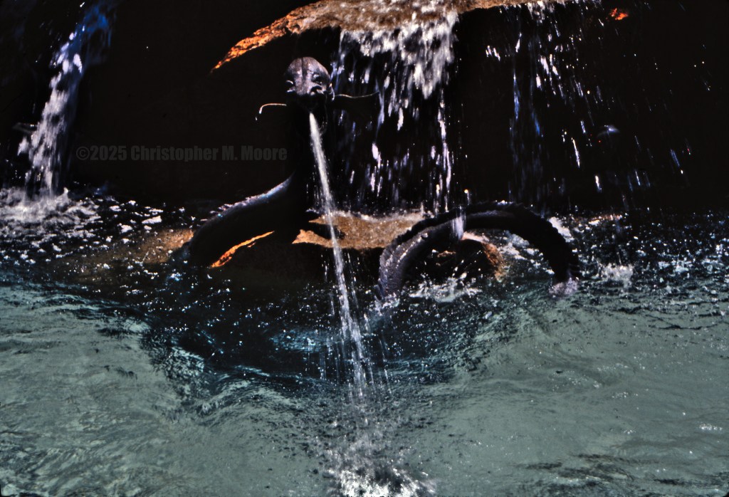 We’re looking at a late 1990’s shot of the “Court of Neptune” fountain in front of the Library of Congress building on First Street in Washington, D.C. Rather it’s a zoom in on the bottom half of the sea serpent of it. I was trying to experiment with slower shutter speeds to get that blurry effect on the water. Pleasing results? Debatable.